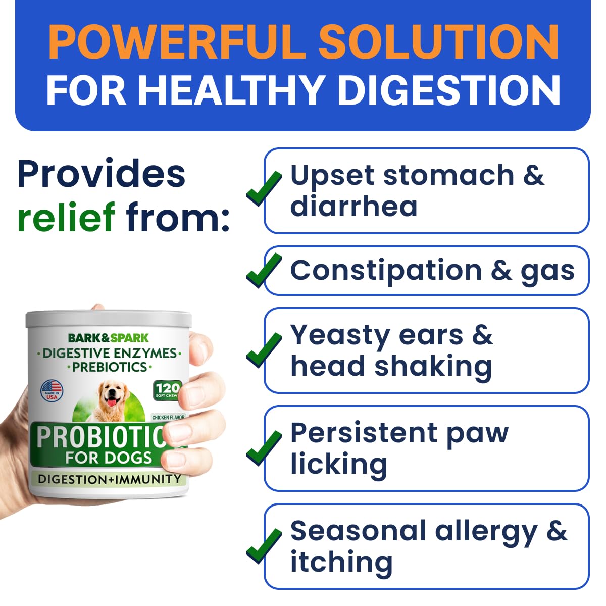 - Itch & Allergy Relief: This probiotic dog chews supplement eases itchy skin and ears by promoting digestion. Our dog gut health probiotics for itching are a natural, chewable treatment that helps restore your doggie coat & skin health.
