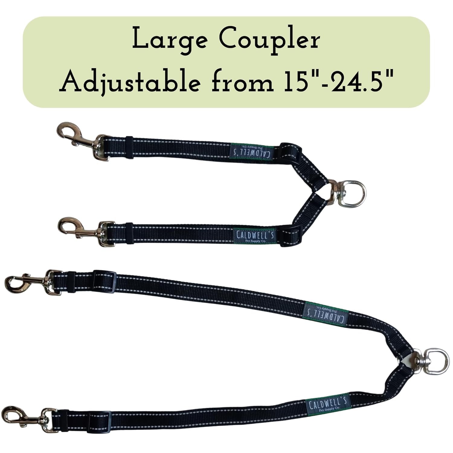 - Adjustable Length: The adjustable design allows for a custom fit & perfect spacing for enjoyable and carefree dog walking. Small: adjusts from 14.5″-24.5″, Large: adjusts from 15″-24.5″. Caldwell’s Pet Supply Co. is American owned and operated, based in Ankeny, IA.