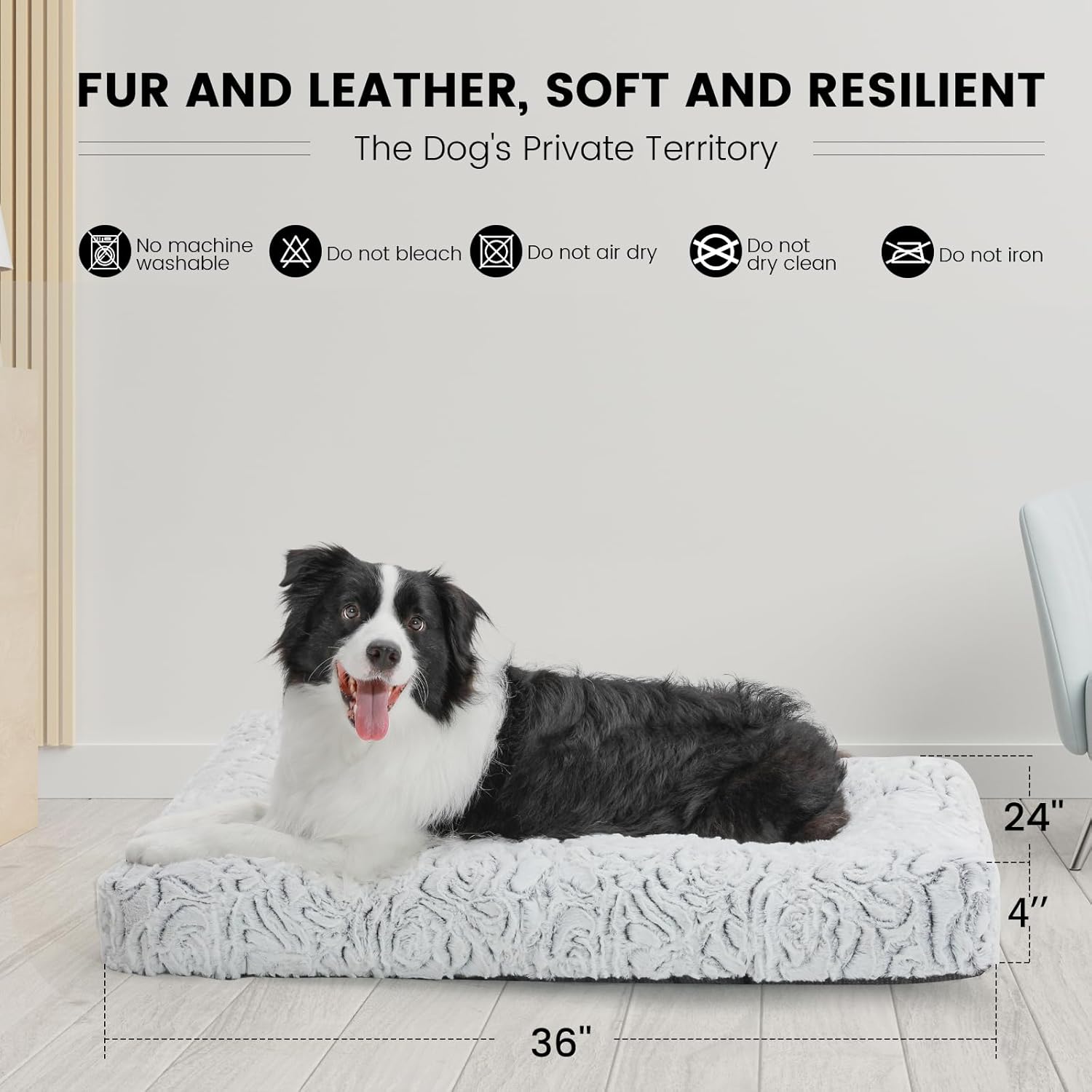 - Dog Bed for Medium Dogs: The dog mattress for crate durable soft dog bedding measures 36″L x 24″W x 4″H, suitable for dogs weighing up to 65 lbs. MACHINE WASHING IS NOT RECOMMENDED, as the sponge will not bounce back as it did at the beginning after absorbing water many times, and it is also easy to tear the sponge out