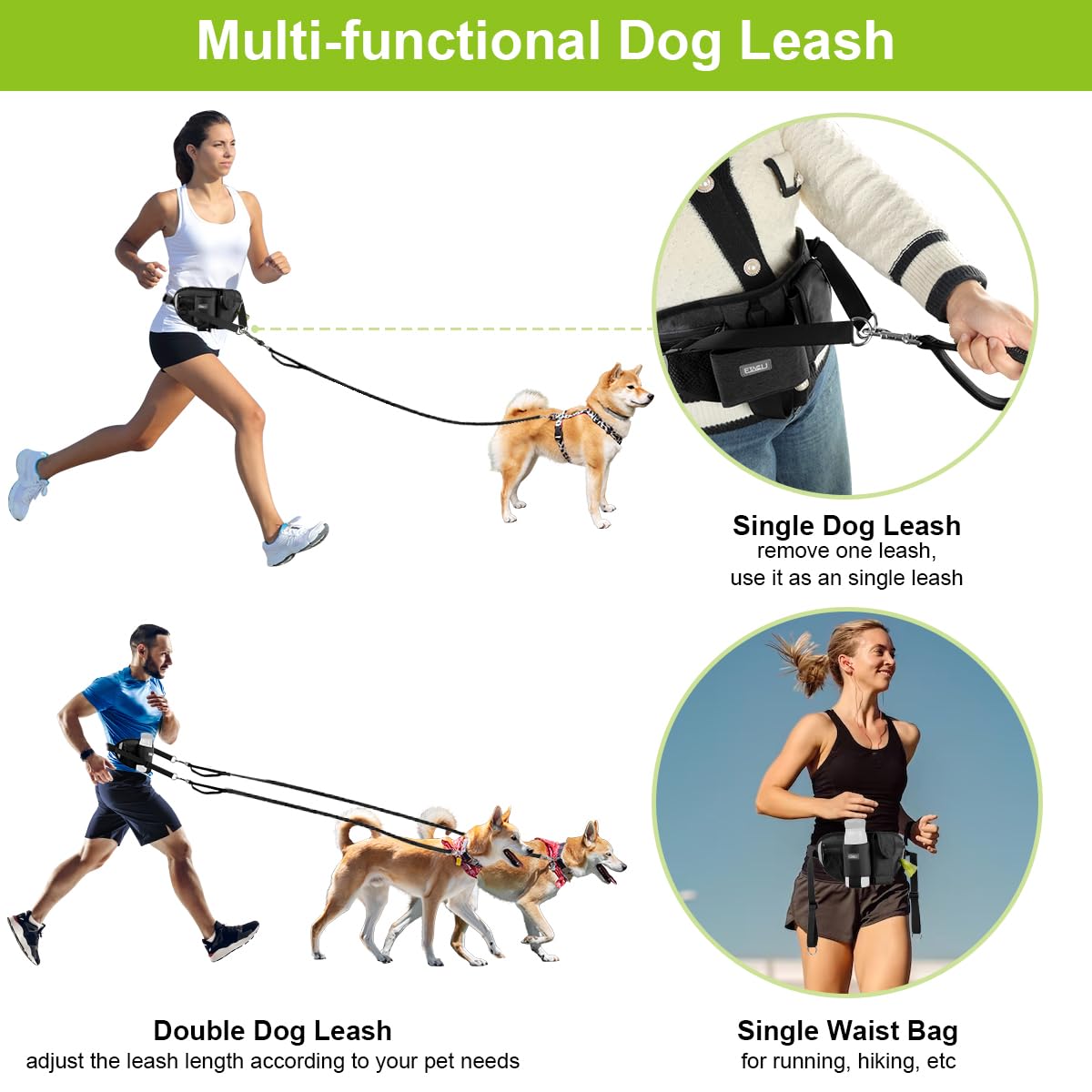 - 【HANDS-FREE CONTROL】 With a Heavy-duty Traffic Handle design, ETACCU dog walking belt provides added control when needed, the dual dog running leash keeps you and your dogs safe on walks and runs. It is fantastic for running with multiple dogs!