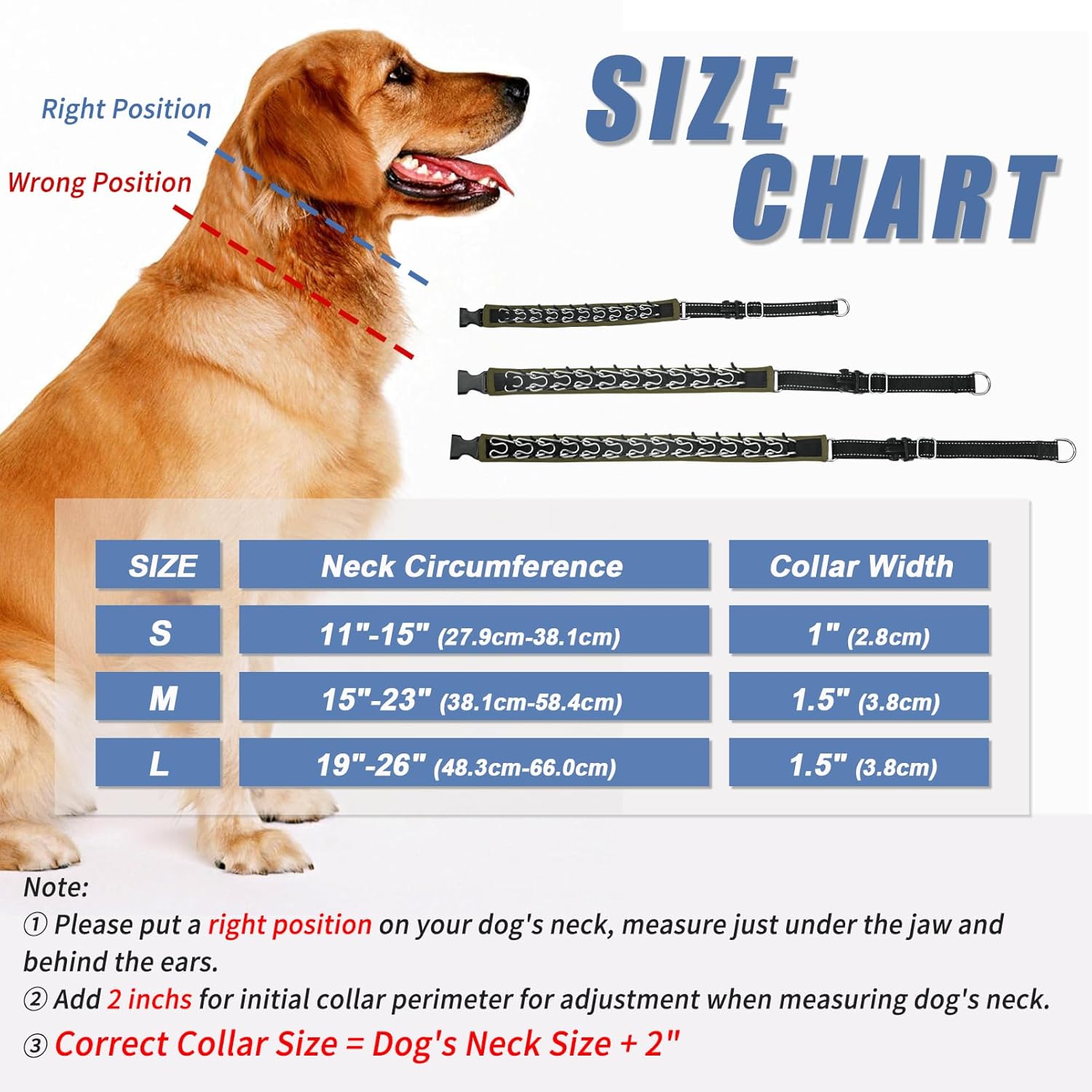 - 🐾【Convenient for Daily Use】Quick Release Safety Buckle and Adjustable Buckle makes Dog Choke Collar easy to adjust and put on and take off. Suitable for small medium large and extra large breeds dogs. Such as: German Shepherd, Pitbull, Rottweiler, Husky and so on. Please measure before purchase, just under the jaw and behind the ears. The measurement should be snug but not tight.