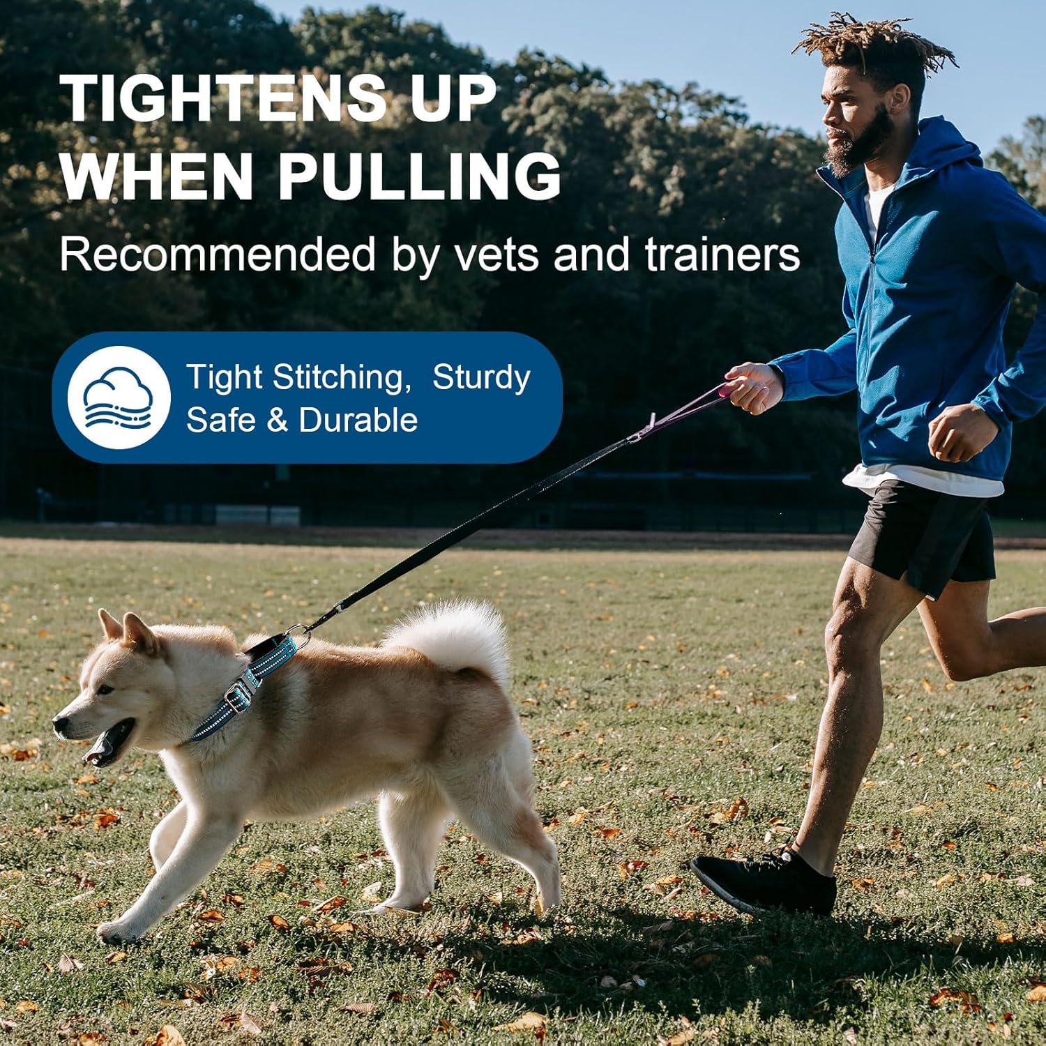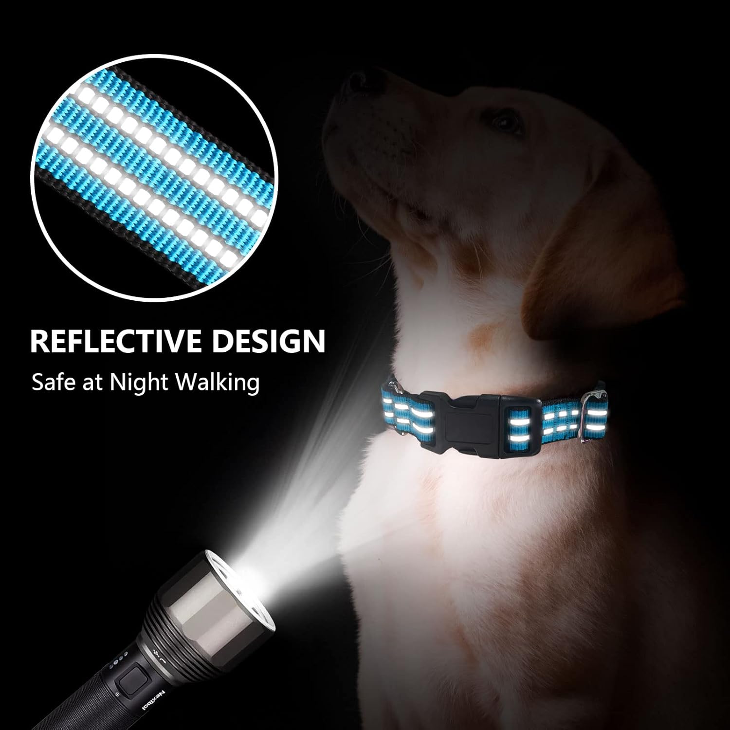 - 【Reflective Dog Collar】 Highly reflective threads keep high visibility at night. Vehicles can find your dogs from distance and walking in the dark would be safer. The no pull dog collar have a secure fit to help prevent dogs from escaping