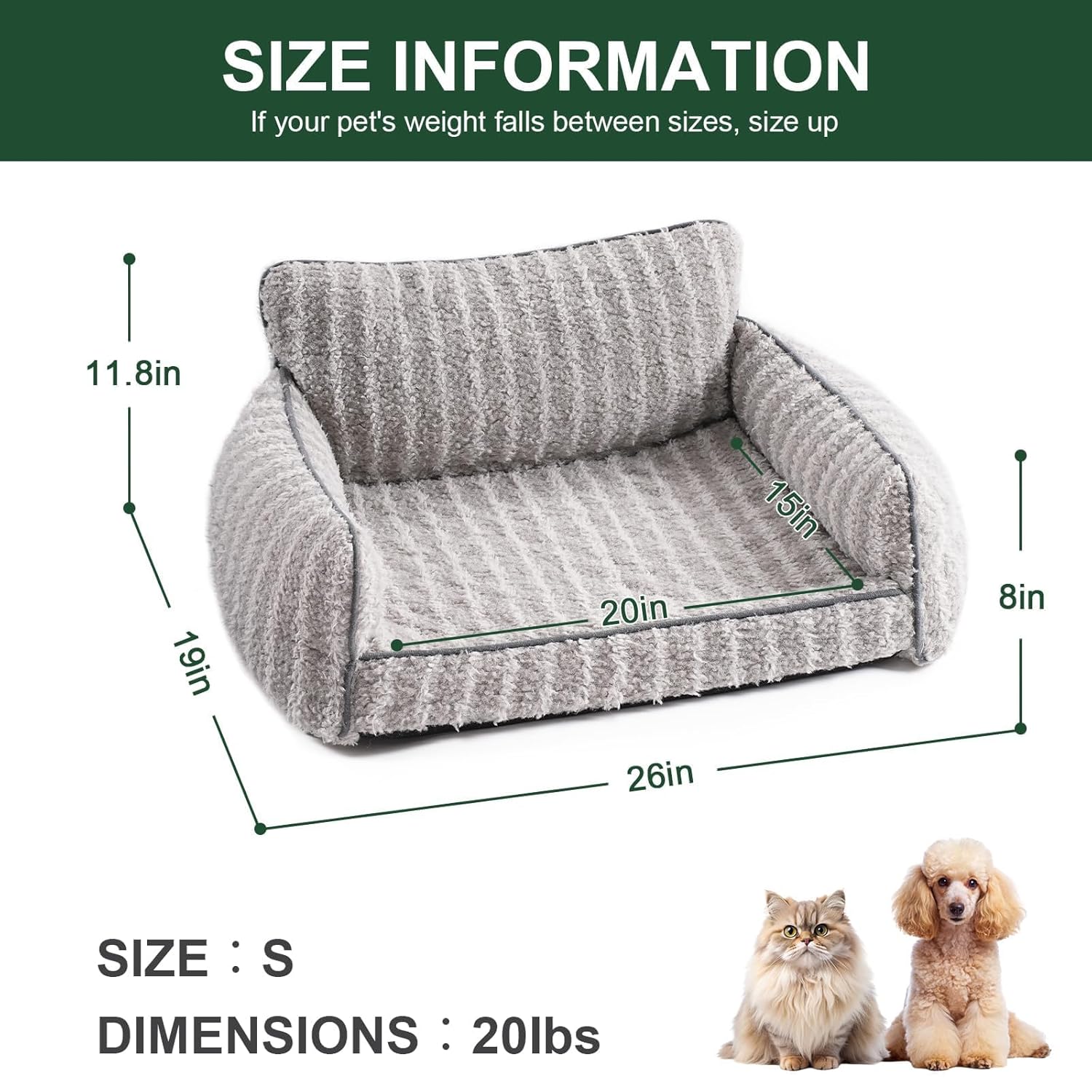 - PET BED SIZE: The pet bed size: small 26″ x 19″ x 11.8″ , medium 30″ x 21.6″ x 13.8″, whether it’s a small to medium sized dog, all cats or rabbits can be easily accommodated. If your pet is larger, we recommend choosing a size larger so they can rest more comfortably