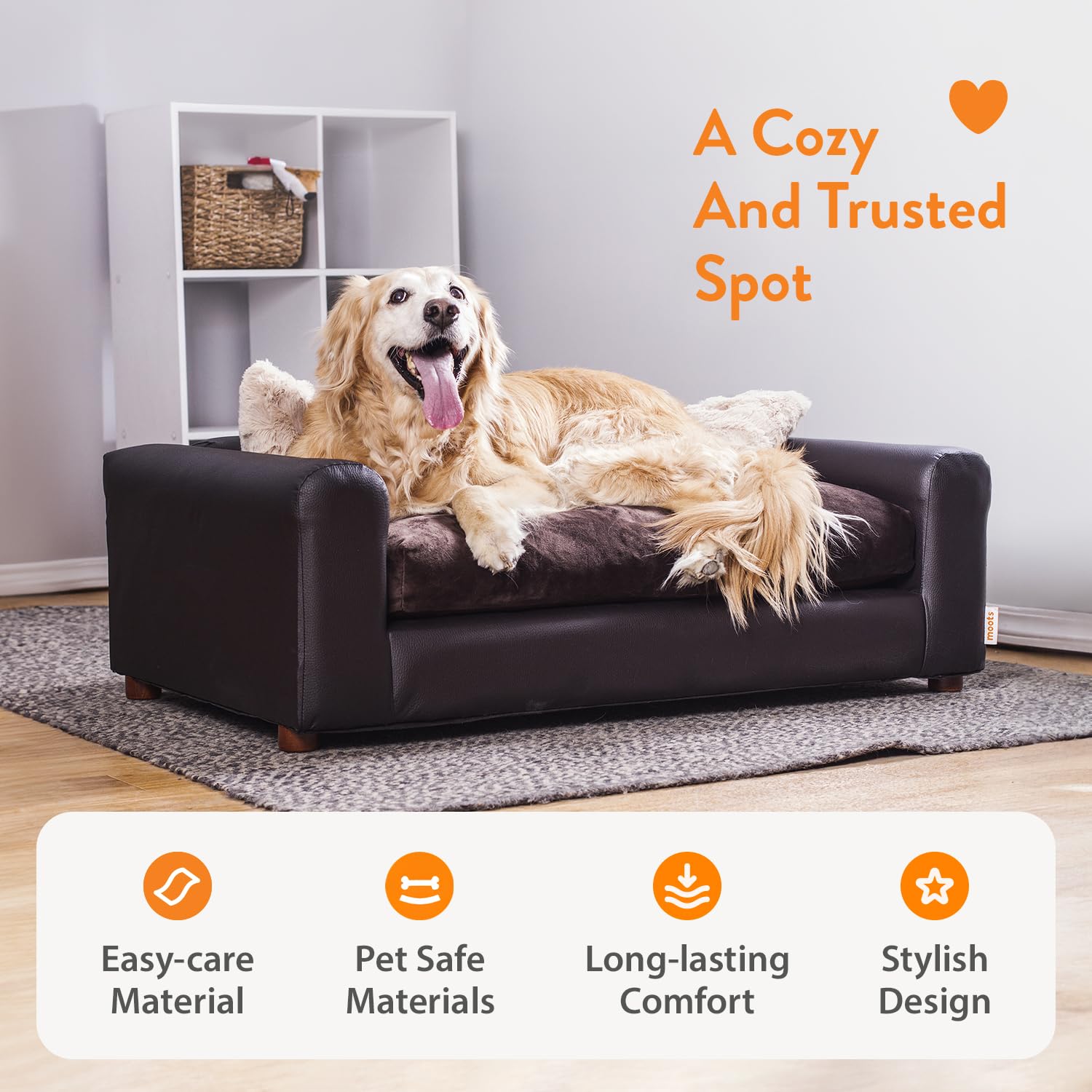 - Premium Faux Leather, Built to Last: Moots Leatherette Dog Couch is crafted with premium faux leather reinforced with mesh fabric for added durability; Our dog sofa bed it’s perfect for playful pups, and cleaning up is a breeze, just wipe spots and dirt away with a damp cloth, keeping your dog’s space fresh and inviting